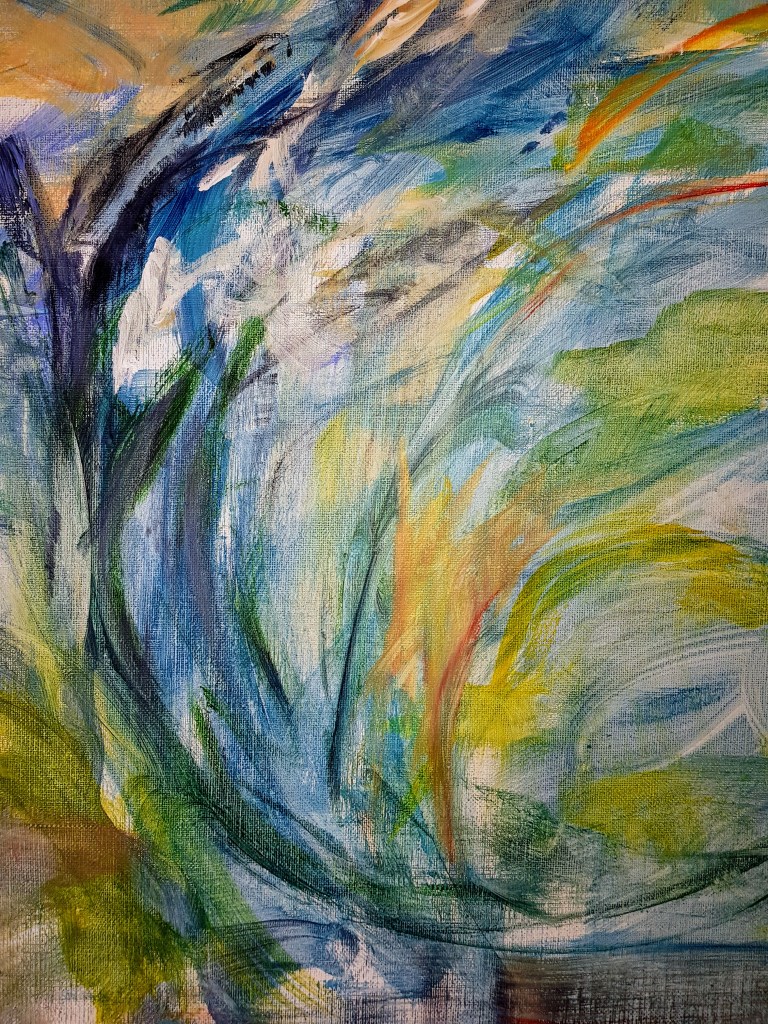 ne pas voir les couleurs comme elles sont réellement est comme demander à un aveugle de peindre, c’est une prise de risque importante. Parfois déçue, d’autres fois agréablement surprise je poursuis le lendemain mon chemin accompagnée d’autres sensations, d’autres musiques intérieures. Ces deux tableaux en sont l’exemple,