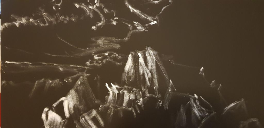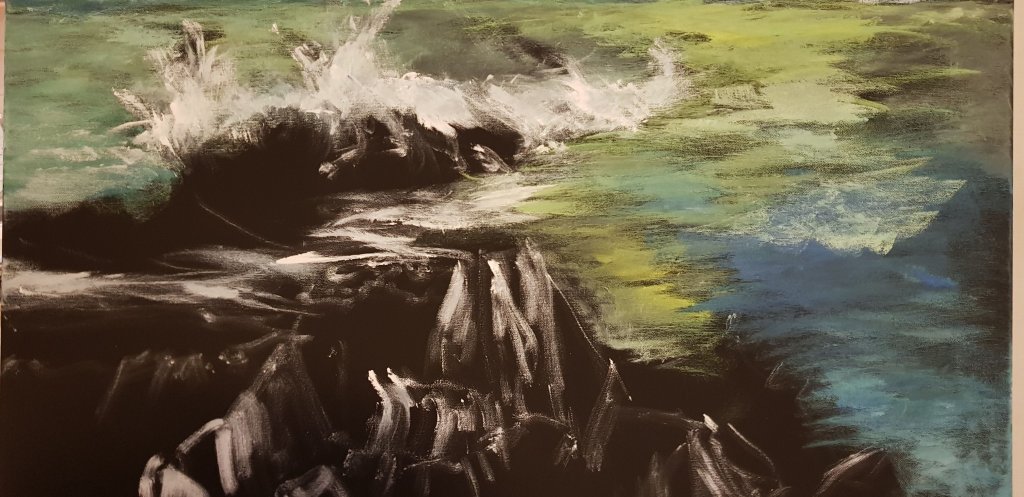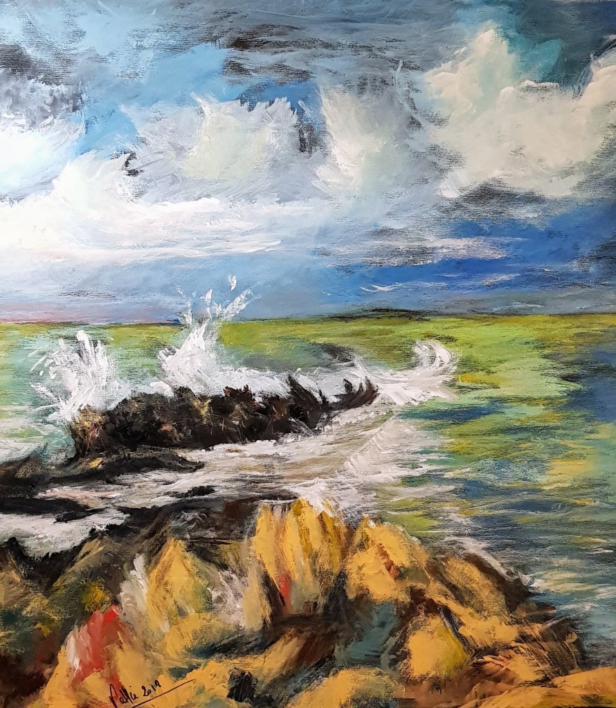 Dans cette galerie photos « Côte Bretonne » je montre comment petit à petit ce tableau s’est construit. De la toile enduite fond noir jusqu’à l’apparition du sujet. jusqu’à la toile aboutie. Les couleurs, l’interprétation est libre de toute recherche de ressemblance s’apparentant à la photographie. Ce sont plus l’émotion, le mouvement et la recherche de lumière qui orientent cette peinture.