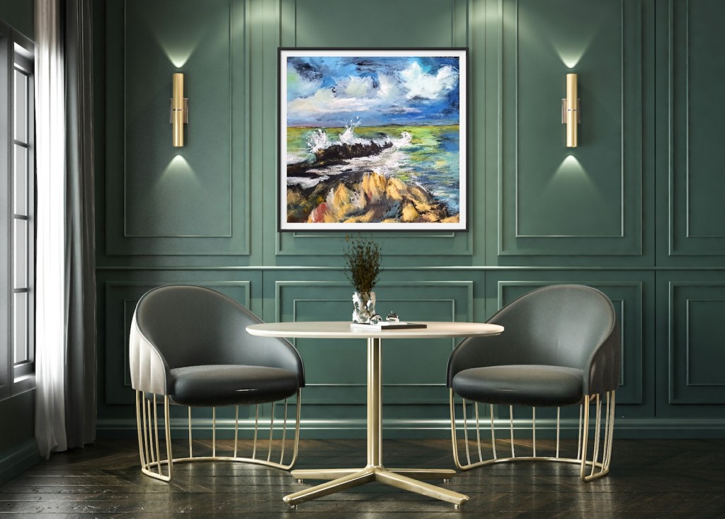 L’eau est très présente dans ma peinture au travers de paysages marins, de vagues, d’ondulations de reflets.
