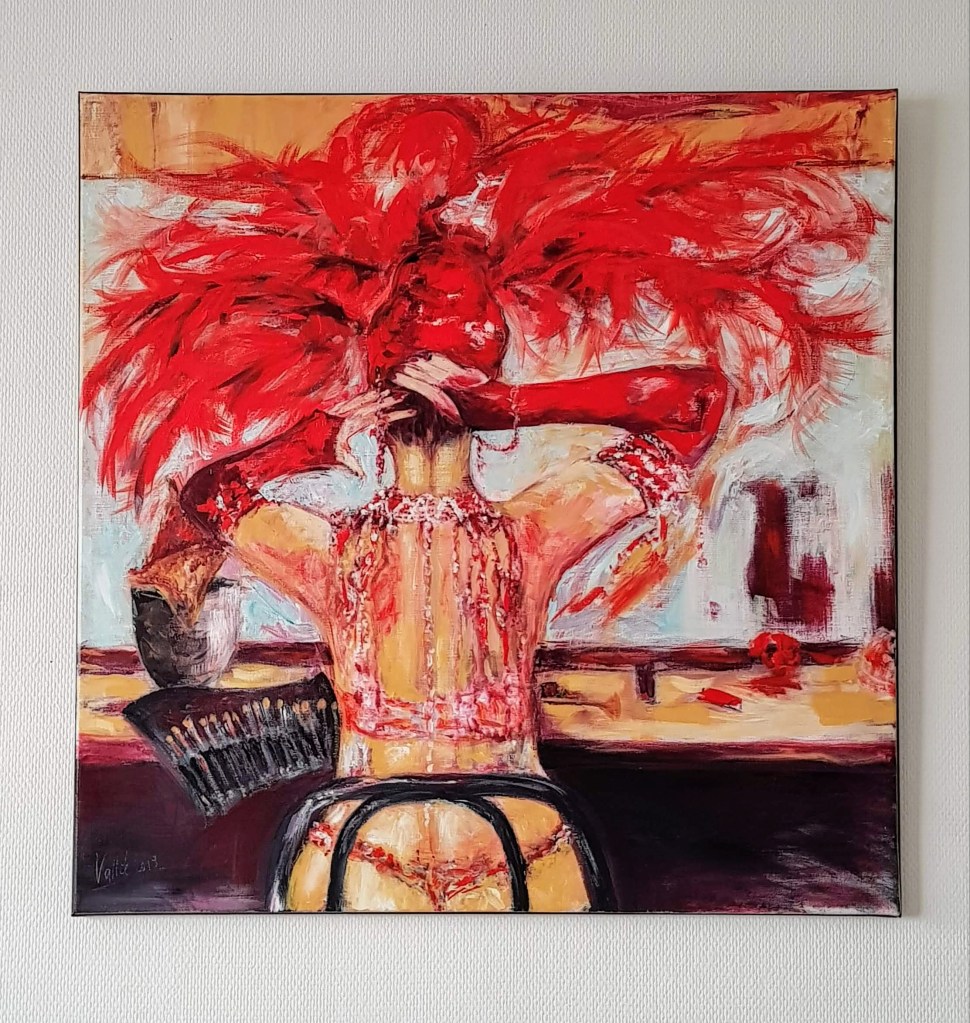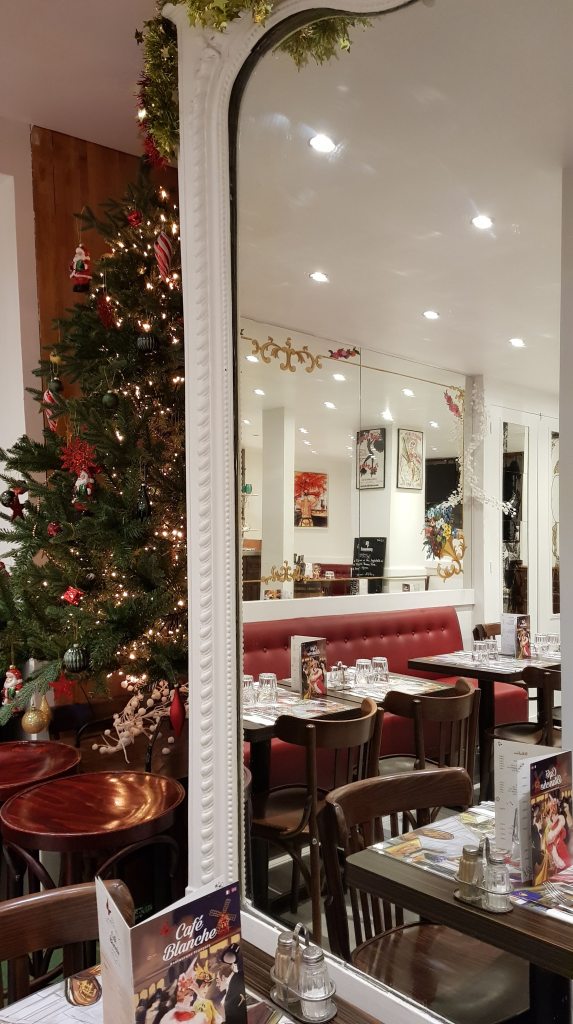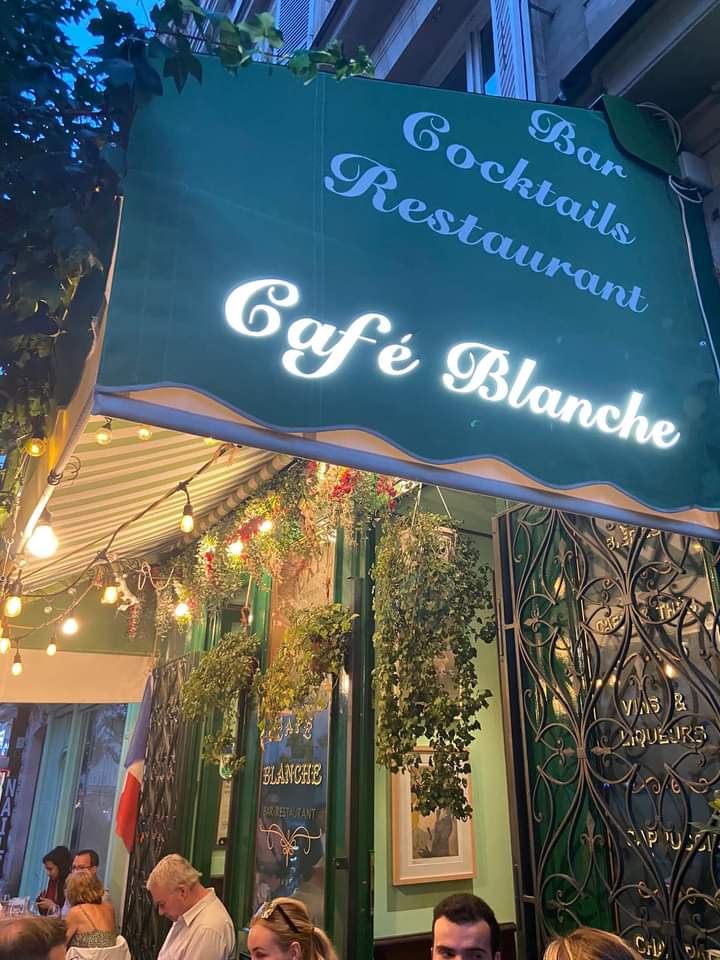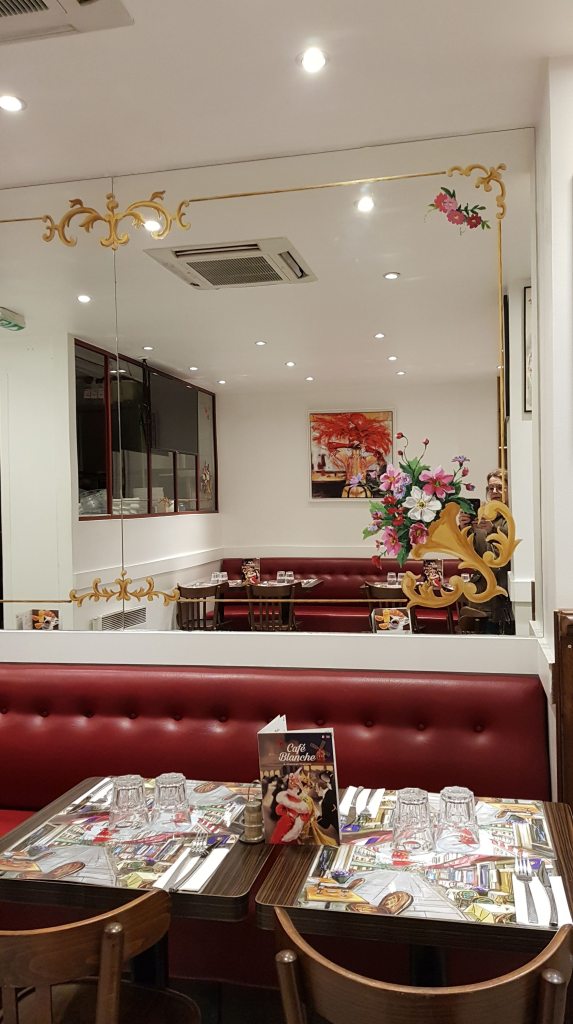 J’ai eu la chance de faire connaissance du patron du « Café Blanche » propriétaire d’un petit restaurant ouvrant dans le 18 ème arrondissement; Christian, un charmant personnage semblant né pour perpétuer « l’esprit d’un Montmartre suranné« , complètement subjugué et imprégné de la « culture Montmartroise » début de siècle qui m’a offert l’opportunité d’exposer chez lui cette toile réalisée pour lui exclusivement.
