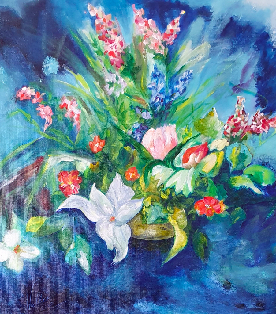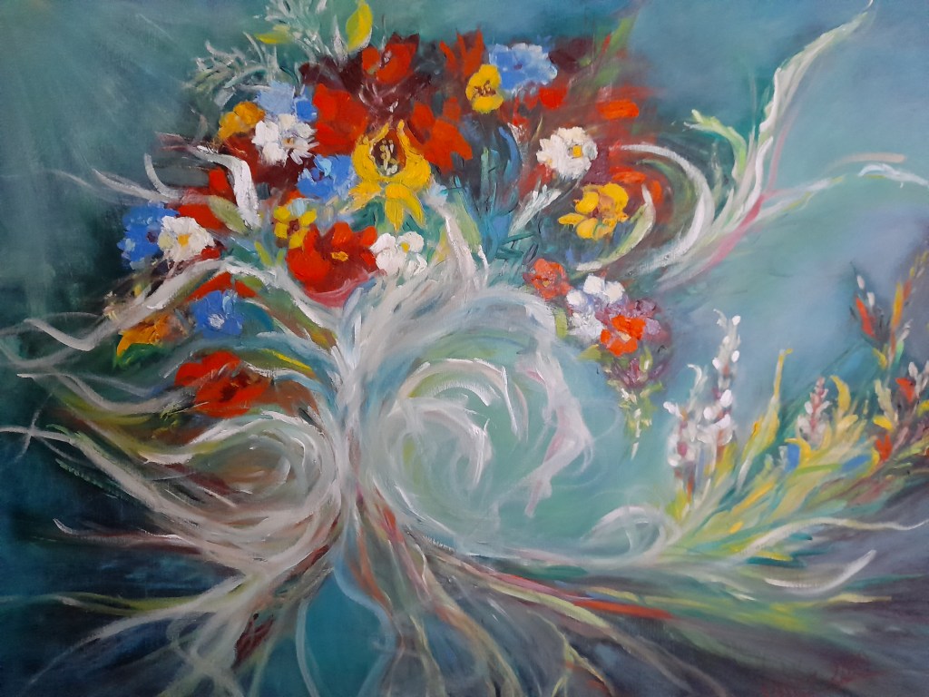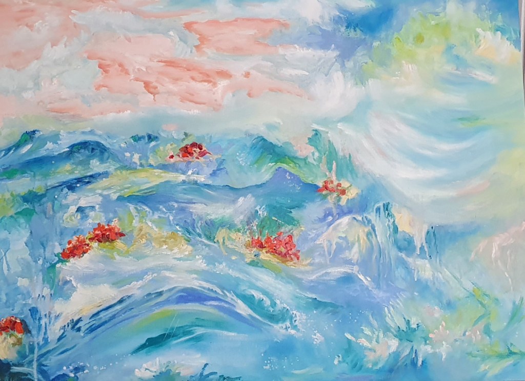Mettre en forme et en couleur les vibrations insufflées par un beau paysage, une fleur, un ciel. Peindre pour ma part c’est retranscrire l’essentiel de mes ressentis. C’est écrire ce qui me touche.