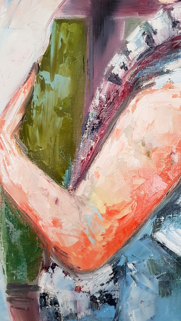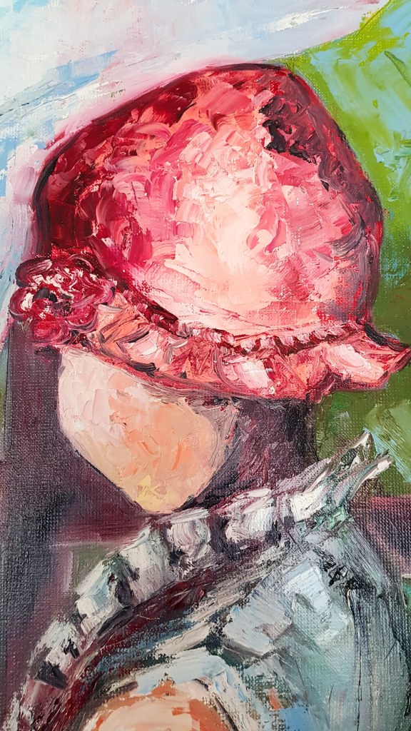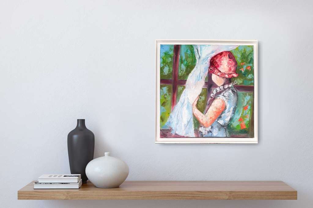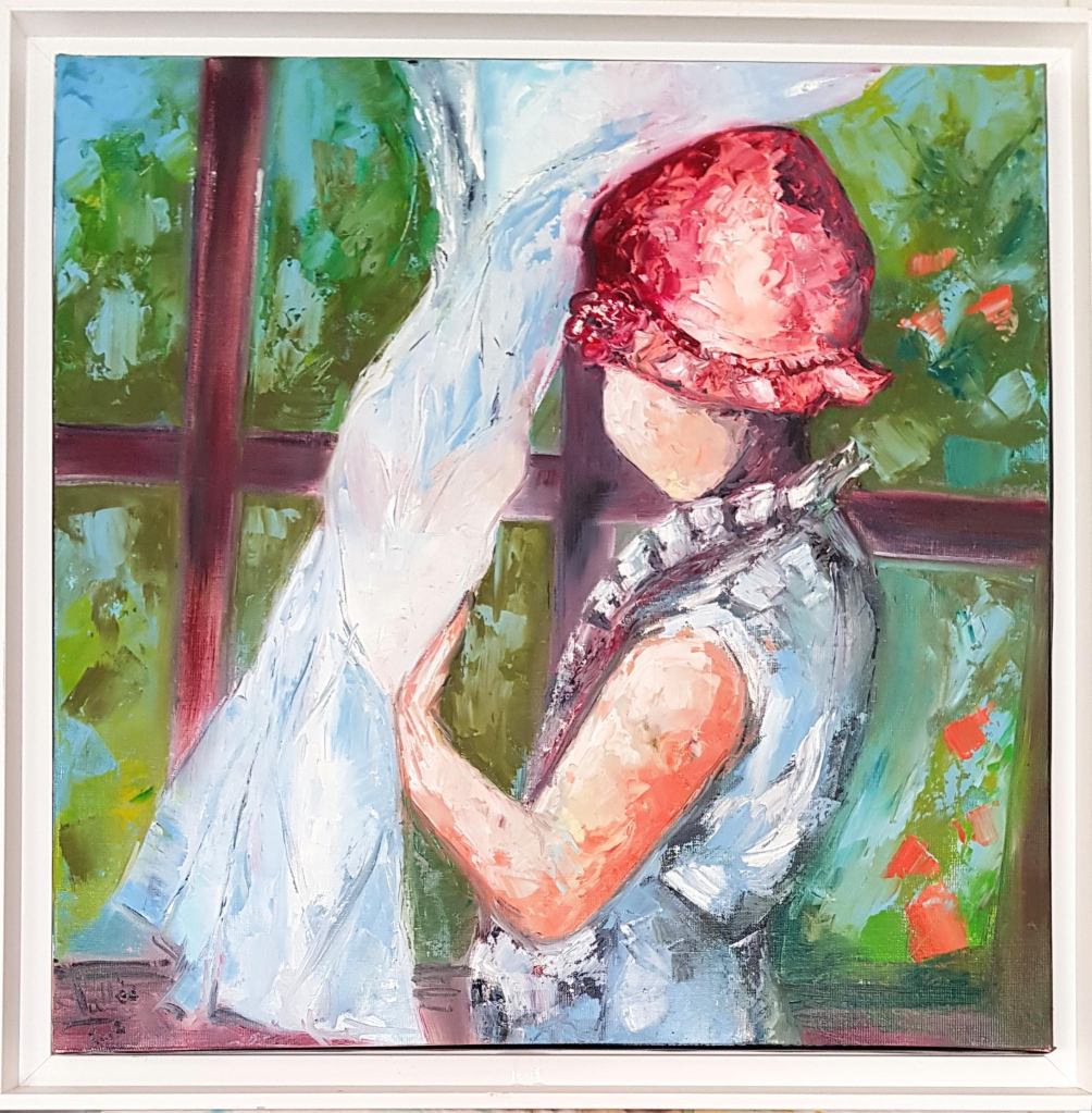 Cette peinture a été réalisée en 2012 et représente un souvenir, la fille d’une amie « NADJA » dont la position et l’attitude sur l’instant m’avaient paru extrêmement romantiques, poétiques et bucoliques. L’ enfant rêvant à la fenêtre, le regard dirigé vers un lointain invisible et mystérieux amène une sensation de nostalgie.